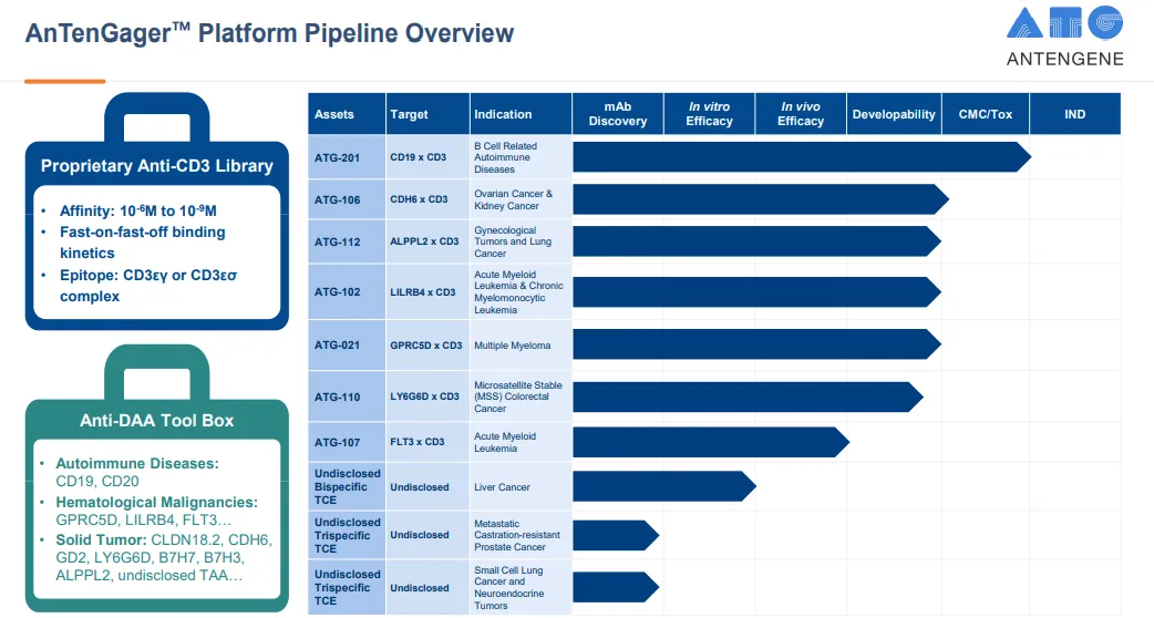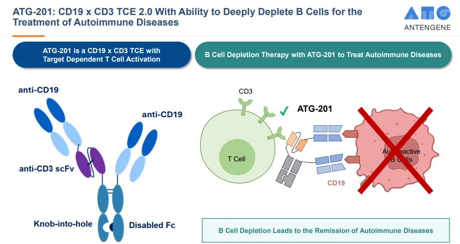 ATG-201是一款在研的CD19/CD3双特异性T细胞衔接器(TCE),专为治疗由B细胞介导的自身免疫性疾病而设计与开发。德琪医药计划于2026年第一季度在中国及澳大利亚提交ATG-201的临床试验申请,并将在上述两个地区完成首次人体(一期)临床研究后把ATG-201的后续临床及其他相关开发工作移交予优时比。
