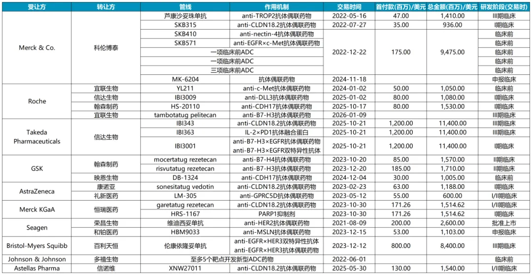 TOP20 MNC与中国创新药企达成的ADC药物交易