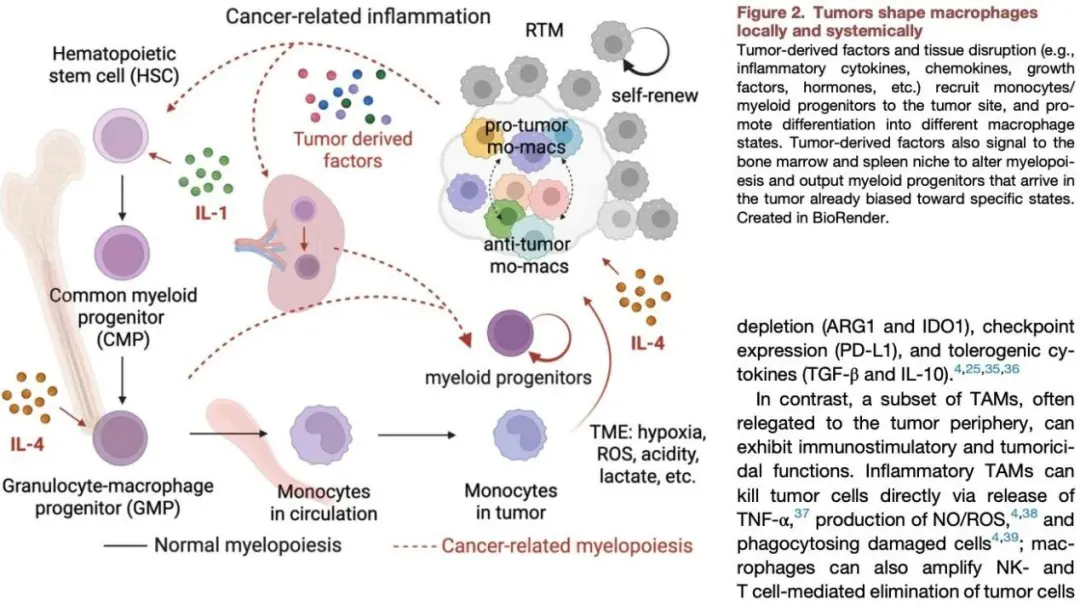 在实体瘤组织中,巨噬细胞的占比最高可达50%,它们在肿瘤的诱导下,极易从具有杀伤能力的M1型“倒戈”为促进肿瘤生长的M2型,通过抑制免疫反应、促进血管生成,让免疫疗法收效甚微。