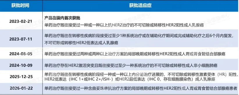 表1:德曲妥珠单抗在国内已获批的适应症