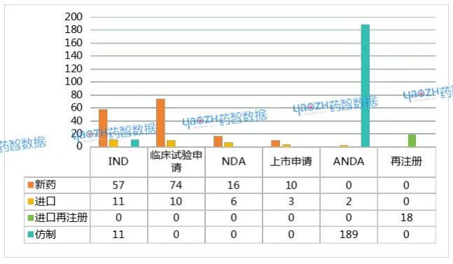 上市申请方面,不仅有26个国产新药(12个化药、10个生物制品、4个中药)、9个进口药品(6个化药、3个生物制品)申请新药上市,还有2个进口药品和189个仿制药申请上市。