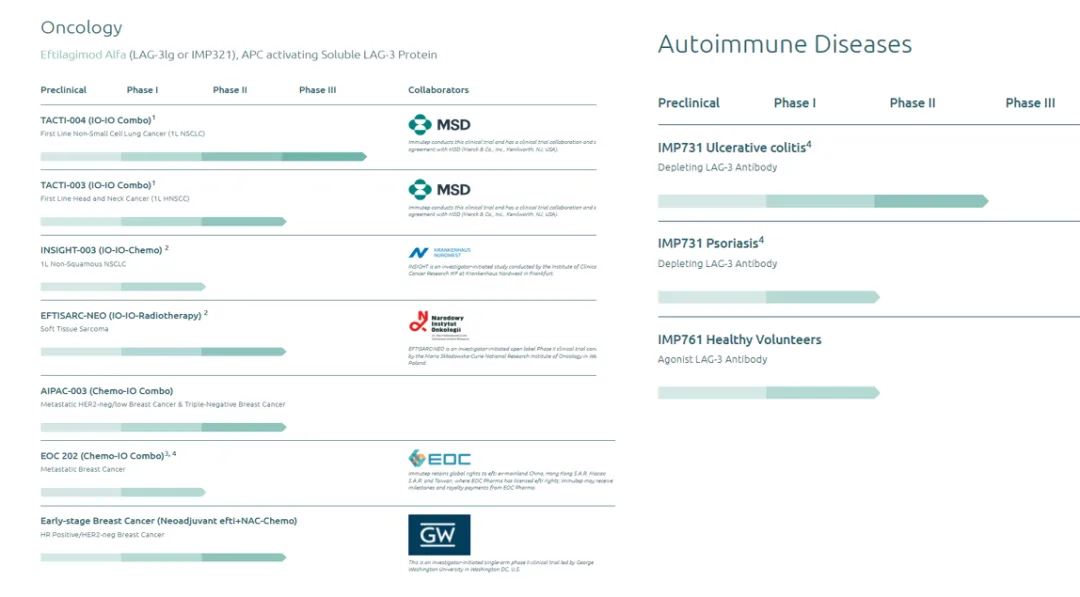 在LAG3开发上,Immutep做了诸多尝试,阻断剂、激动剂,适应症有肿瘤,也有免疫。