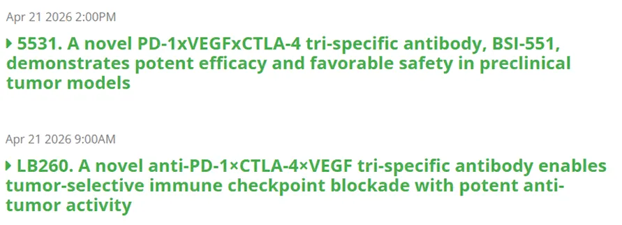 2026年AACR会议中的PD-1(L1)/VEGF相关三抗(AACR)