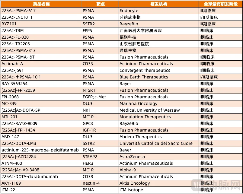 图3. 进入临床Ⅰ期阶段之后的锕-225核药管线(资料来源:医药魔方)
