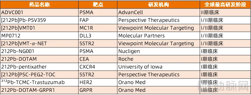 图5. 进入临床Ⅰ期阶段之后的铅-212核药管线(资料来源:医药魔方)