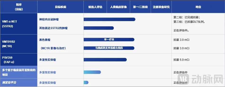 虽然铅-212的研发进展落后于锕-225,但资金仍在持续进入这一领域。核药公司Perspective Therapeutics在今年2月初通过股份发行筹集了约1.75亿美元,以加速其基于铅-212的技术平台和临床项目。其在研管线中VMT-α-NET与VMT01已经进入临床Ⅰ/Ⅱ期阶段,分别靶向MC1R和SSTR2。