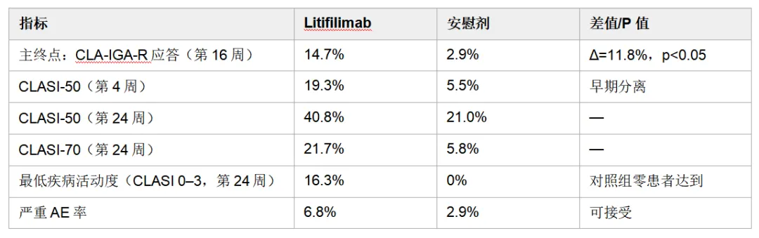 2025年,litifilimab已在LILAC研究中读出首个阳性Ph2数据,并获得FDA突破性疗法认定(Breakthrough Therapy Designation)。此次在AAD 2026(3月28日)呈现的AMETHYST Ph2/3 Part A结果,是第二次独立Ph2的正式验证: