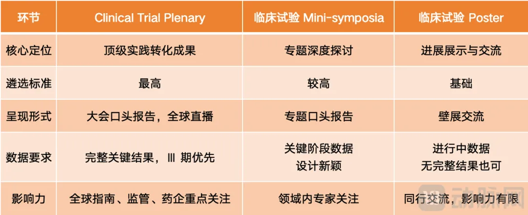 作为每年AACR的重头戏,CTP是整届年会里最硬核的部分。根据会制,AACR给研究者和药企提供了多个层级的分享平台,包括口头报告平台CTP、临床试验Mini symposia,和壁报平台临床试验Poster。其中,CTP的层级最高,每年只有十余项研究成果可以入选。在官方定义中,CTP是集中展示能显著改变临床实践的创新疗法与关键数据的平台。能够登上CTP的研究成果,往往也会被全球指南、监管机构与药企列为重要参考。