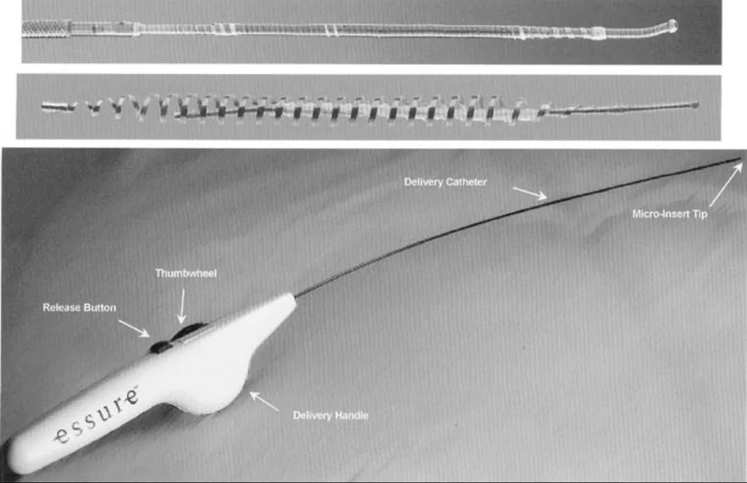 纤维填充:PET(聚对苯二甲酸乙二醇酯)纤维夹在螺旋间隙,诱发局部纤维化,数周至数月内形成瘢痕,永久堵塞输卵管。