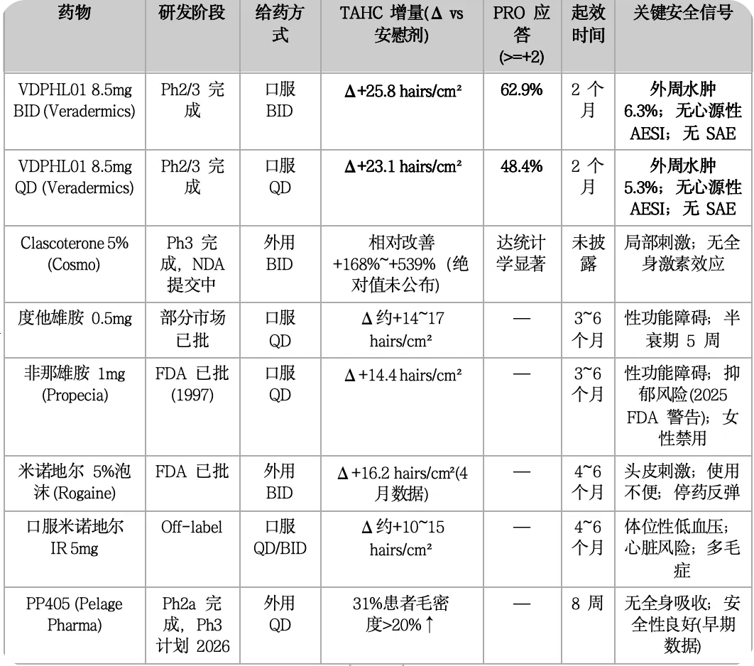 VDPHL01的数据,或许就是这个答案开始成形的样子。+33 hairs/cm²,62.9%的患者自报改善,2个月起效,零心源性不良事件——放在三十年的背景下,这组数字足够镇住众人。