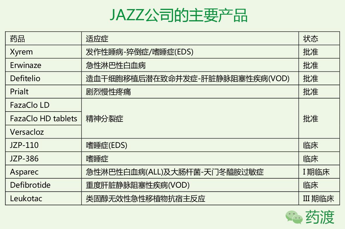 爵士制药公司Jazz Pharmaceuticals Public Limited Company(NASDAQ:JAZZ)创立于2003年,总部位于爱尔兰都柏林,全职雇员885人,主要在美国、欧洲及国际间从事各种医学所需之药品的参与、研发及销售。